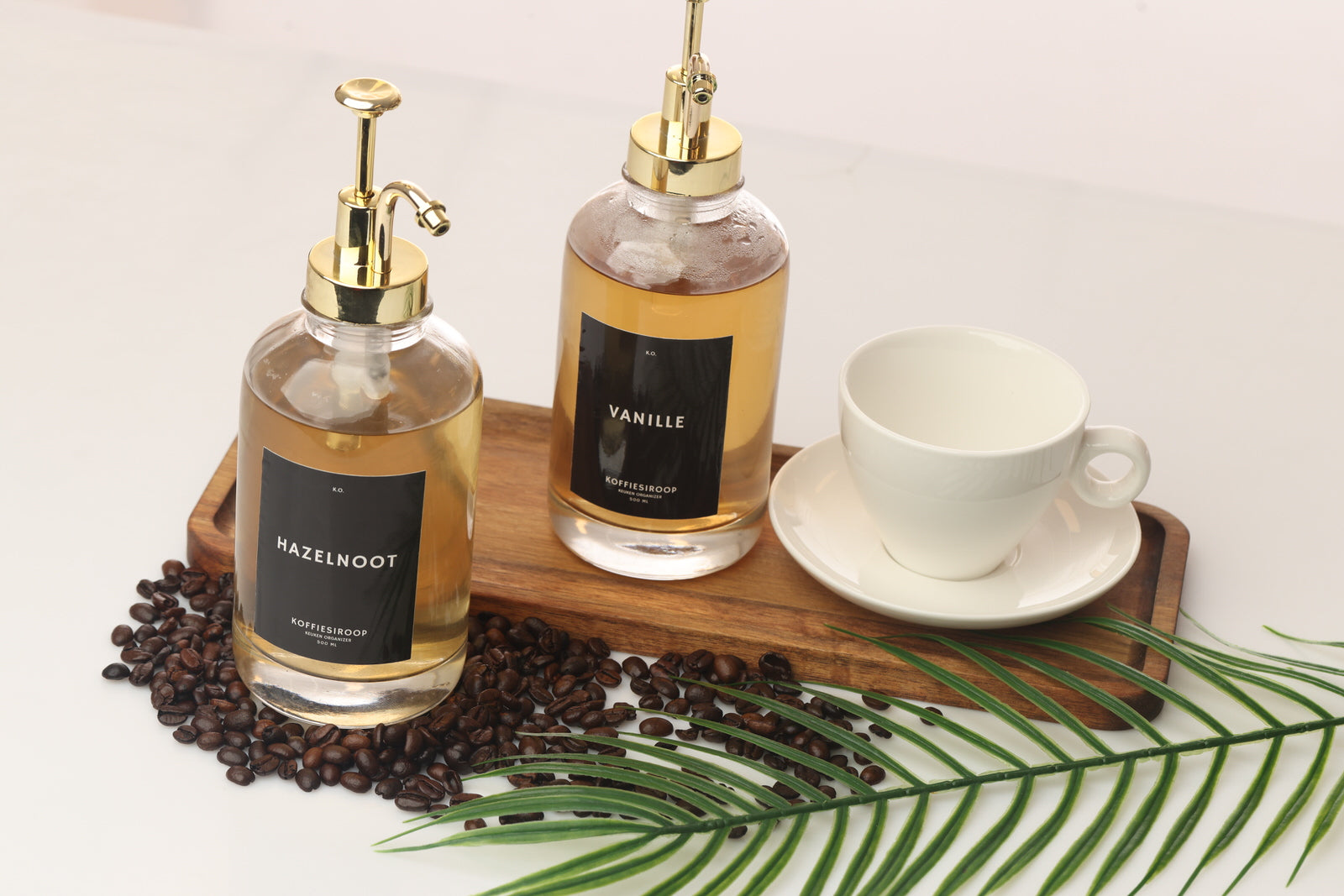 Koffie siroop dispensers met pomp stijlvol en functioneel.