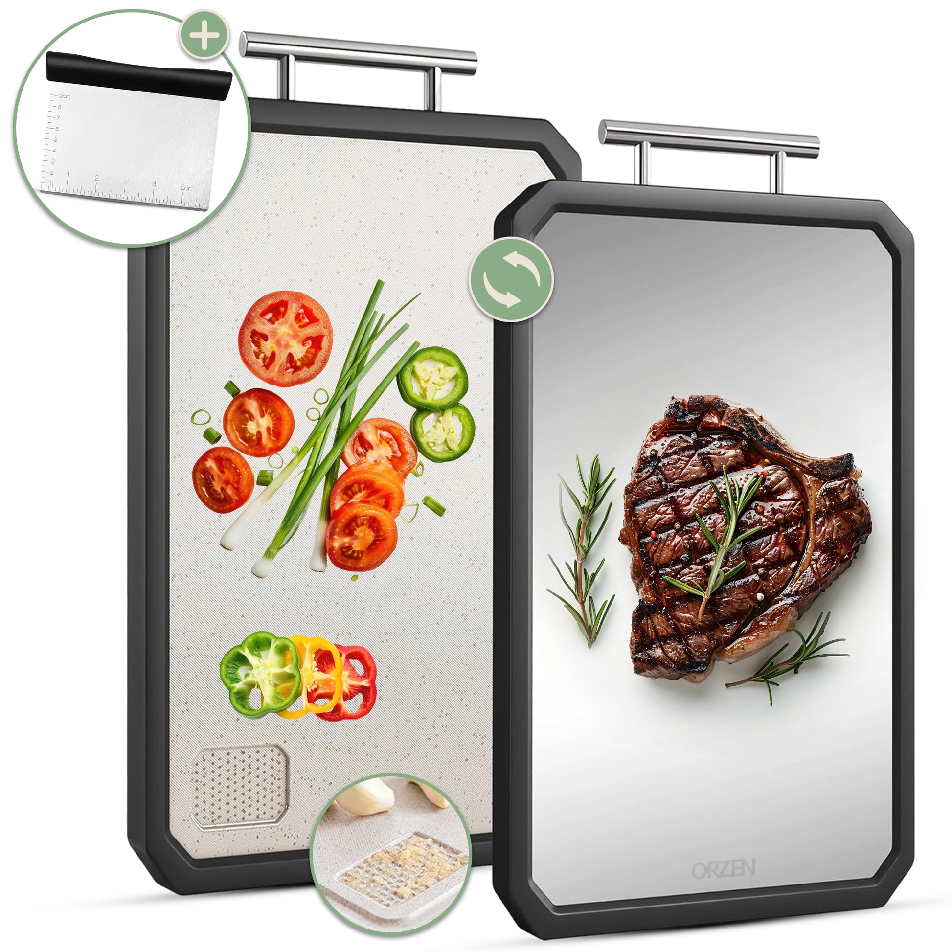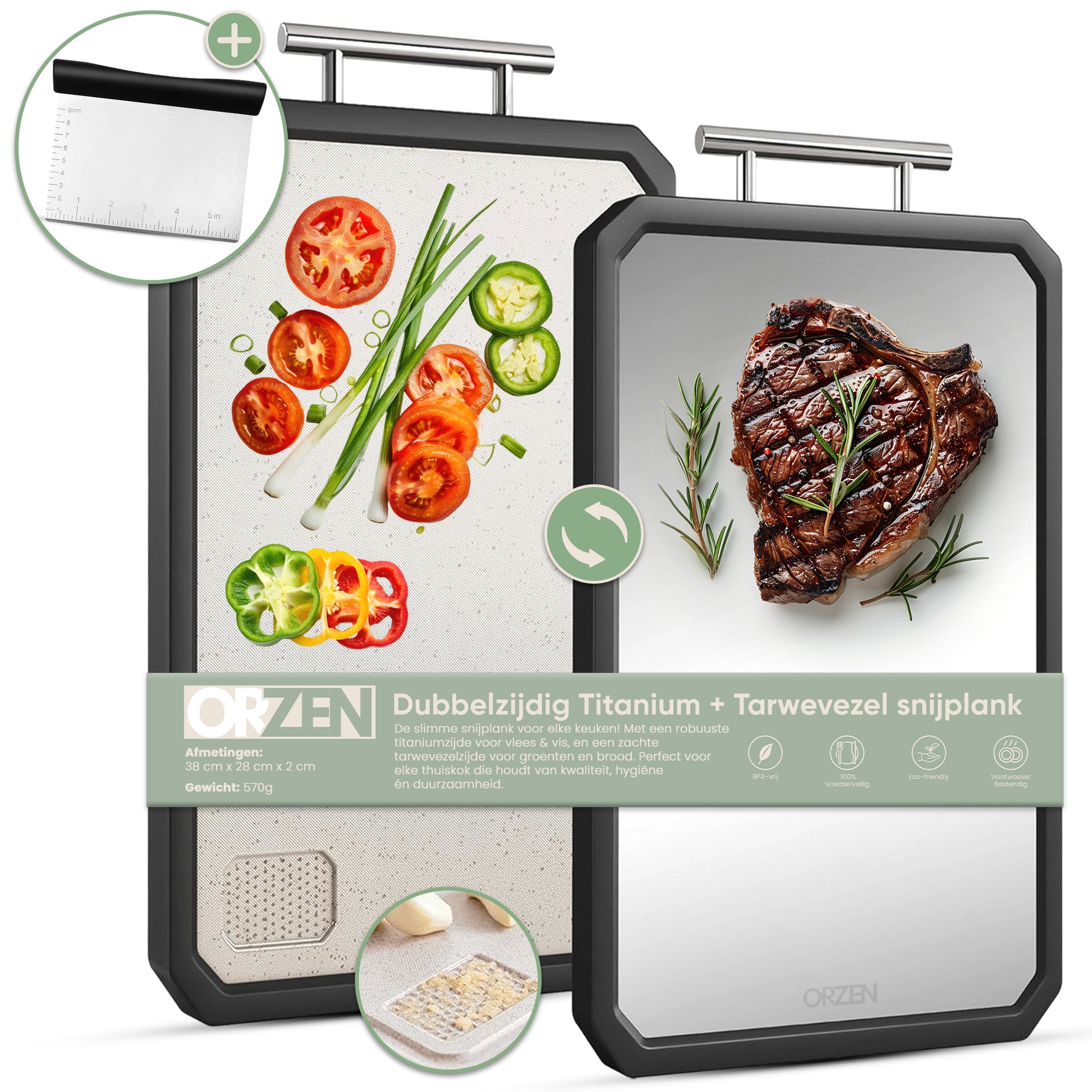 Orzen Titanium Snijplank met Design Handvat – Dubbelzijdige & PFAS-vrije Set